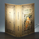 Lampe de table en forme de livre ouvert avec la couverture du livre de Charles Baudelaire. Les Fleurs du Mal est un recueil lyrique considéré comme l'une des œuvres poétiques les plus influentes, célèbres et innovantes du XIXe siècle français.