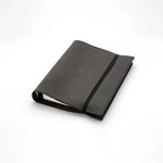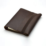 Carnet de notes en cuir pleine fleur avec fermeture élastique et doté d´une pochette en début et fin de carnet pour les documents.