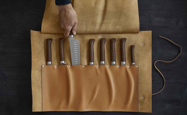 Cette natte en cuir de vache pleine fleur vous assurera une protection optimale lors du transport de vos grands couteaux de cuisine.