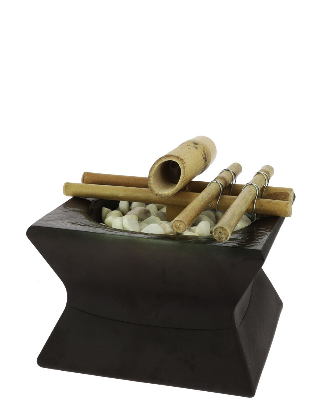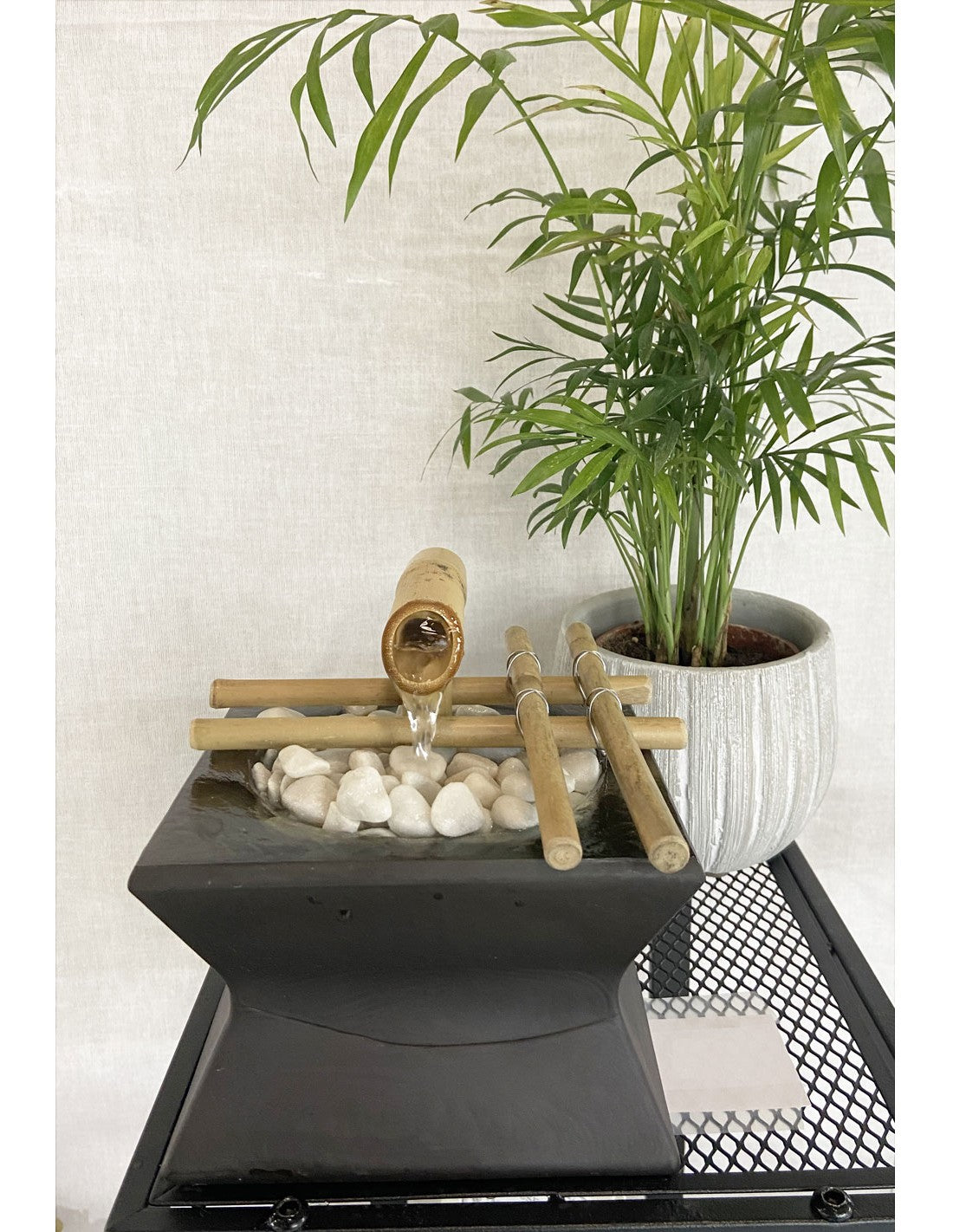 Cette Fontaine Kyoto est un objet de décoration délicat et relaxant. Cette Fontaine est composée du kit (robinet, pompe et tube), de son support, de cailloux blancs et des bambous. Elle permet de créer une véritable fontaine fonctionnelle, visuelle et pratique.