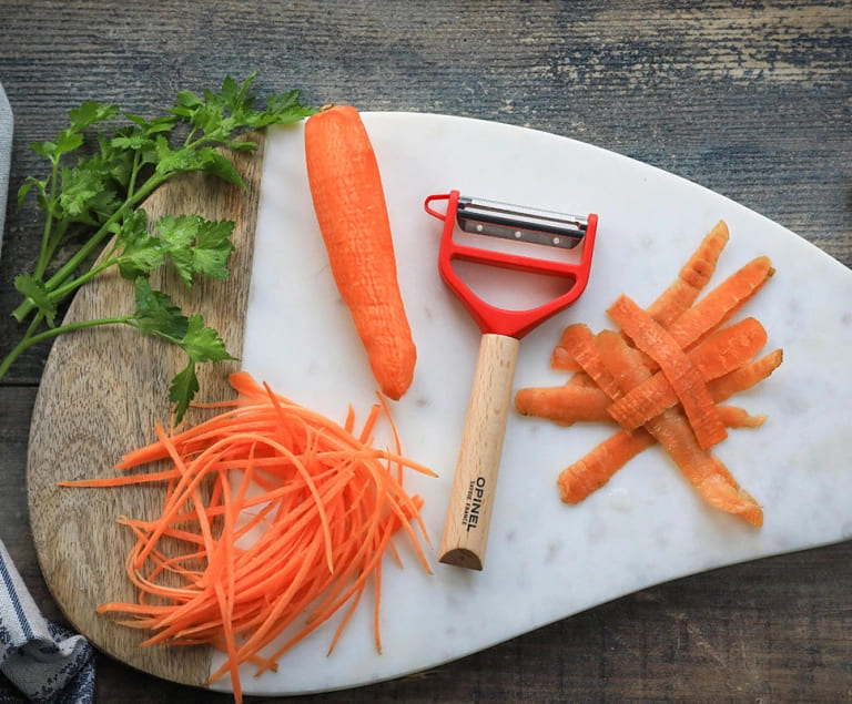 Sa lame microdentée , tranchante et durable, permet d'éplucher les légumes à peaux fines et à peaux épaisses . Sa seconde lame permet de faire des spaghettis de légumes et d'ainsi réaliser des juliennes , salades et autres accompagnements.