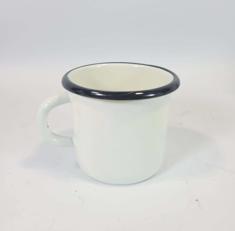 Cette belle tasse en émail est très bien faite et l'émail est très épais, ce qui rend la tasse très confortable à utiliser au quotidien. Leur poids dans la main témoigne de leur qualité de fabrication !