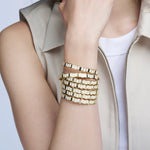 Ce design de jonc vous séduira par ses lignes graphiques colorées et structurées. Chaque barrette qui le compose est dorée ou émaillée.