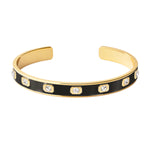 - Jonc en laiton, finition or, laque colorée et cristaux.