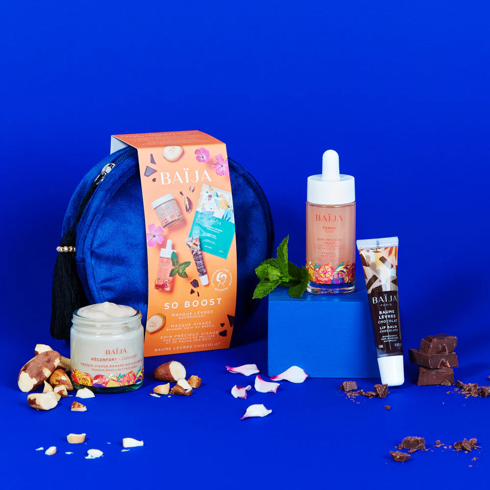 C’est LA routine que toutes les peaux sèches, sensibles ou en manque de tonus attendaient ! Ce coffret So Boost est un nuage de douceur pour nourrir et revigorer votre peau et vos lèvres. Il offre une routine de soins et d’accessoires ultra-complète :