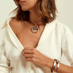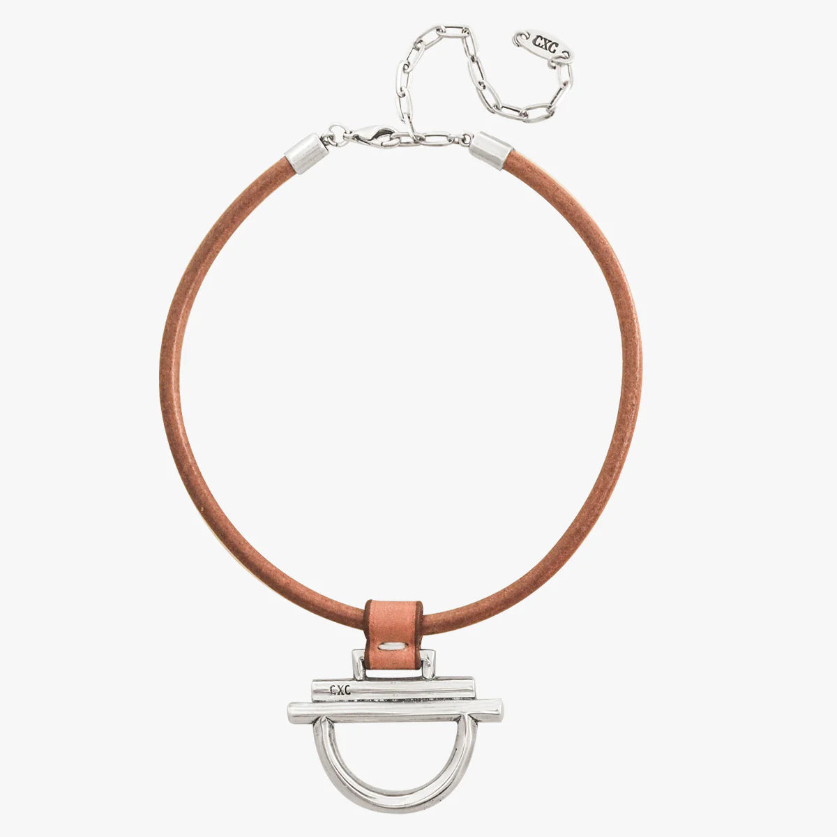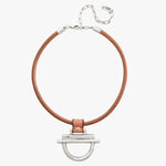 Tour de cou réglable en taille avec cuir camel de 5 mm de diamètre. Il dispose d'une chaîne d'extension de 12 cm.Motif central, bornes et chaîne argentés.Poids : 40gr.