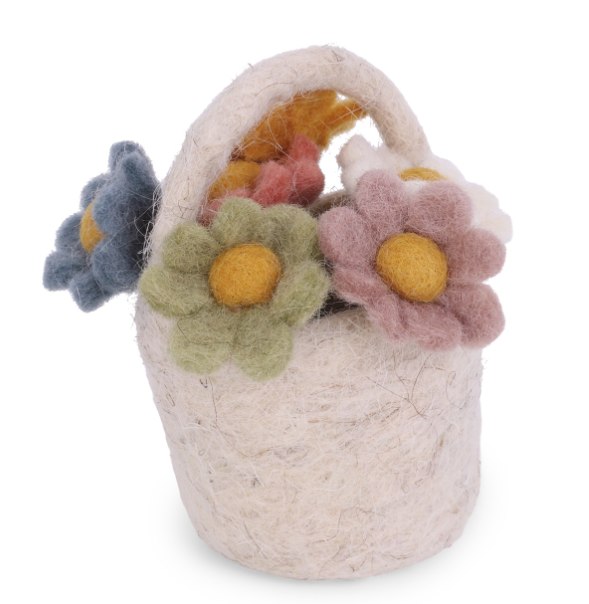 Petit panier en laine rempli de fleurs, fabriqué au Népal