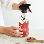 Le spray maison est maintenant prêt à l'emploi. S'il y a du dépôt au fond de la bouteille, secouez avant utilisation. À utiliser dans les 3 mois suivant la préparation.