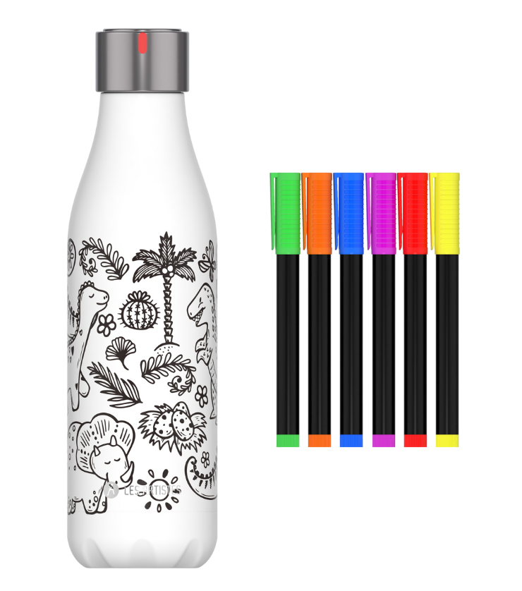 Ce modèle à colorier est accompagné de 6 feutres lavables, permettant de redessiner des dinosaures à l'infini. Elle garde vos boissons à la température idéale, chaude ou froide, tout en étant réutilisable et écoresponsable. Un cadeau parfait pour libérer l’imagination des petits et grands explorateurs, tout en adoptant un mode de vie durable.