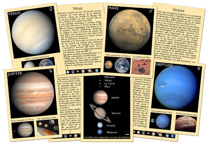 Apprends tout sur les planètes et le système solaire grâce à cette jolie boite en carton contenant 14 fiches détaillées planète par planète.