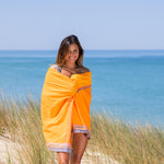 La serviette de plage en Kikoy est un produit 2 en 1 désormais incontournable pour vos moments de détente à la plage. D'un côté un tissu traditionnel d'Afrique de l'Est appelé le Kikoy fabriqué avec du coton peigné. De l'autre une fine serviette de plage en éponge pour vous sécher en revenant de votre baignade, avec une petite poche à l'intérieur. Un drap de plage chic et pratique à la fois.