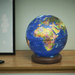 Ce globe exquis est doté d'une très belle finition distincte : un globe bleu foncé majestueux reposant sur une riche base en noyer. Disponible en deux tailles, Mini et Large, ce qui en fait un choix parfait pour n'importe quelle pièce, qu'il s'agisse d'un bureau confortable ou d'un salon spacieux.
