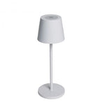 Il a une hauteur visant à ne pas obstruer la vue entre les convives. Lampe tactile (s'allume avec une touche sur la partie supérieure) en aluminium peint, rechargeable par USB, dimmable (cela signifie qu'il est possible de régler l'intensité de la lumière en touchant la partie supérieure de la lampe avec un doigt).