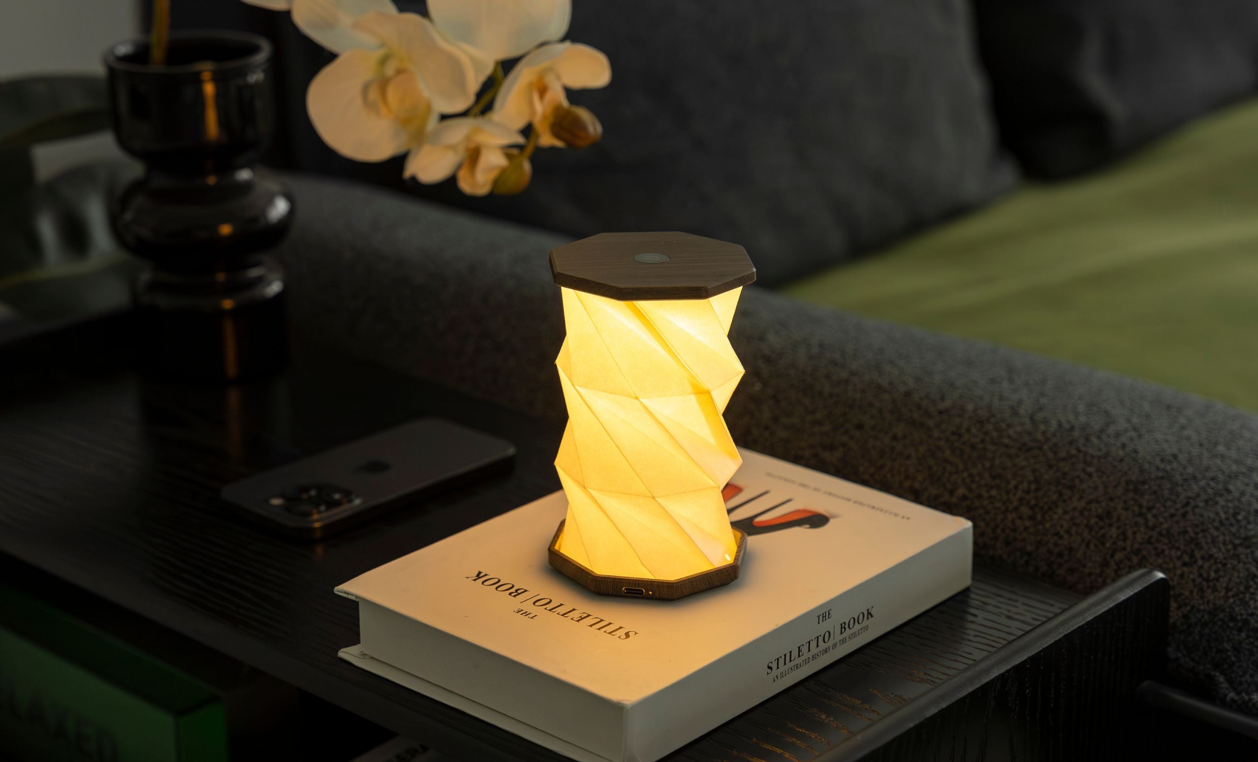 Compacte, portable et interactive, la lampe Mini Hexagon Twist apporte une touche sculpturale et une lumière d'ambiance chaleureuse à tous les espaces. D'un simple geste, elle se transforme d'un objet décoratif moderne en une source de lumière polyvalente. Dotée d'une batterie rechargeable USB-C (6 à 8 heures d'autonomie) et d'un papier résistant et durable.