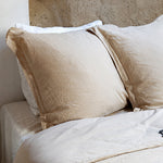 Une combinaison confortable : une partie avant en tissu 100 % lin pur et un dos en percale de coton. Les taies d'oreiller ont une finition Oxford de 3,5 cm et apportent un petit plus a votre chambre. Disponible en differentes nuances de gris.