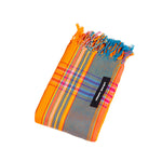 Hawaï, ce nom d'île lointaine qui fait rêver, nous l'avons donné à ce coton orange intense à la bordure bleu gris. Orné de petites bandes orange et dans différents tons de rose, avec de fines lignes orange, fuchsia, bleu canard ou encore framboise, ce Kikoy offre un rendu chaleureux assorti aux tons des fleurs hawaïennes.