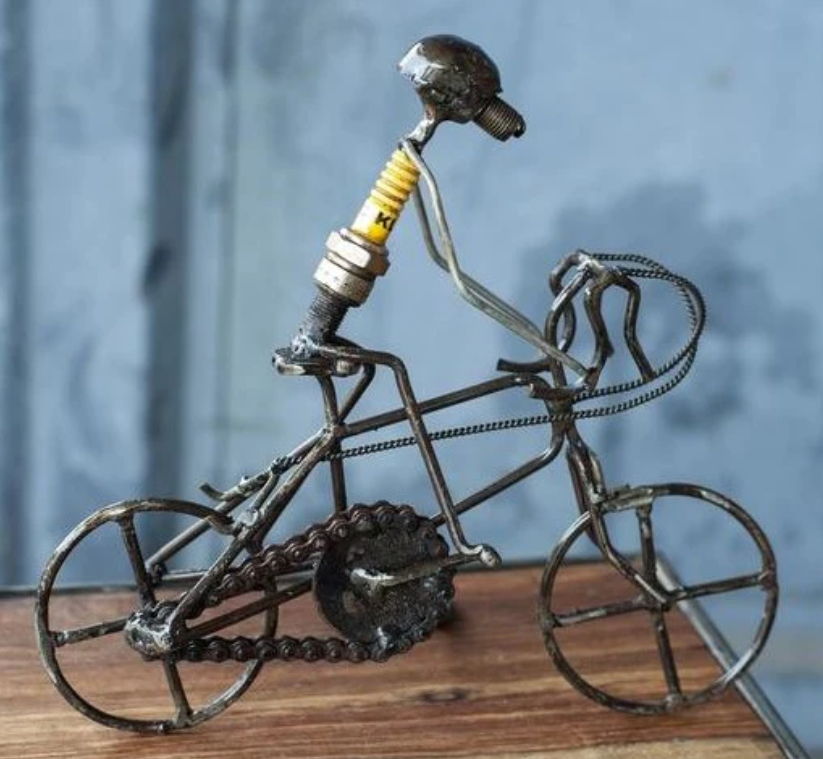 Émile et Matthieu, deux personnages au design unique, fabriqués à partir de bougies d'allumage de moto, de ferraille et de tout ce qui peut être trouvé à la casse. Les pièces sélectionnées sont soudées ensemble pour former ces figurines inhabituelles dans un travail manuel minutieux - et bien sûr aussi économe en ressources et durable que possible ! Que ce soit en tant qu'athlètes, jardiniers, dentistes ou hommes d'affaires - les deux métamorphes ne sont pas seulement un cadeau, mais uniques !