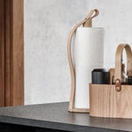 Organisez avec style. Notre plateau en bois, fabriqué en chêne issu de sources durables et rehaussé de cuir, offre un rangement polyvalent. Sans séparateurs, des possibilités infinies.