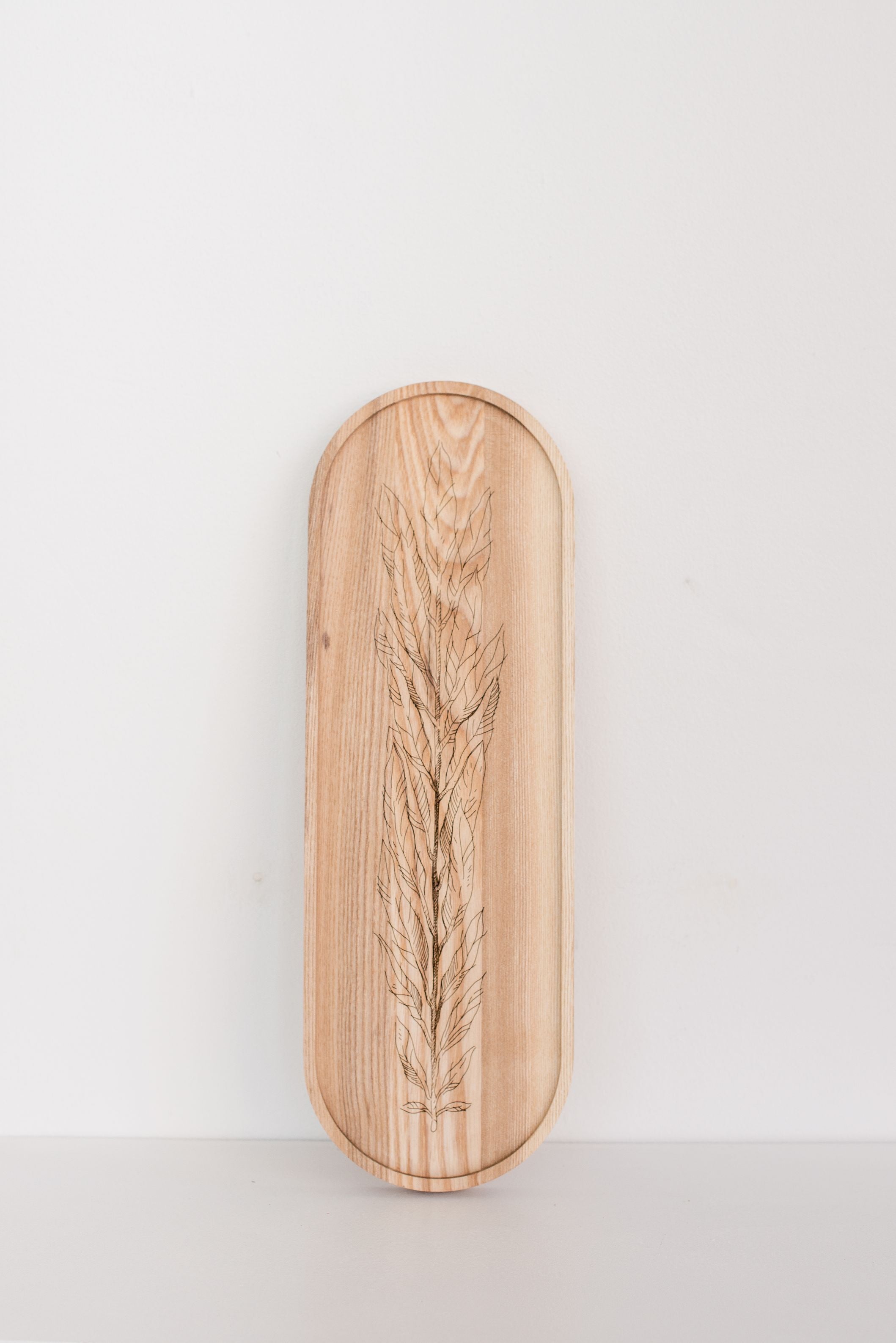 Les plateaux ovales en frêne sont fabriqués en chêne naturel et éminemment utiles dans toute la maison, que ce soit pour servir, exposer ou ranger des objets comme des bijoux et des montres à votre chevet. Finition en huile minérale alimentaire.