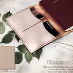 Porte passeport en cuir recyclé à 100% doté d´un rangements pour le passeport, permis de conduire ou carte grise et 2 pour les cartes.