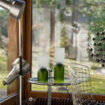 La lampe à poser Q de bouteilles prend vie dans les intérieurs. Multiple, elle se fait lampe de chevet, de bureau ou se pose dans la pièce de vie. Sous son apparente simplicité, cette première édition naît de gestes minutieux. Façonnée dans l'épaule de magnums de vin puis assemblée par le col, elle se manifeste sous la forme d'un sablier à deux teintes. Sablées par l'extérieur, ses cloches éclairent d'une lumière tamisée ; passées au four, elles offrent un rendu satiné.
