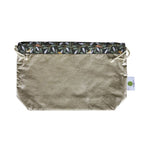 - Ce Sac à Pains est composé d’une toile 100% coton résistante à l’intérieure (couleur grise ou moutarde) et un coton enduit à l’extérieur pour que les pains restent à l’abri de l’air, de la lumière.