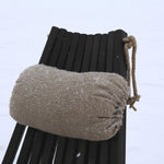 Coussin en lin, spécialement conçu pour EcoChair. Remplissage en microfibre polyester à séchage rapide fabriqué à partir de bouteilles en PET récoltées en mer. Complète votre expérience EcoChair en offrant un soutien pour votre cou et votre tête.