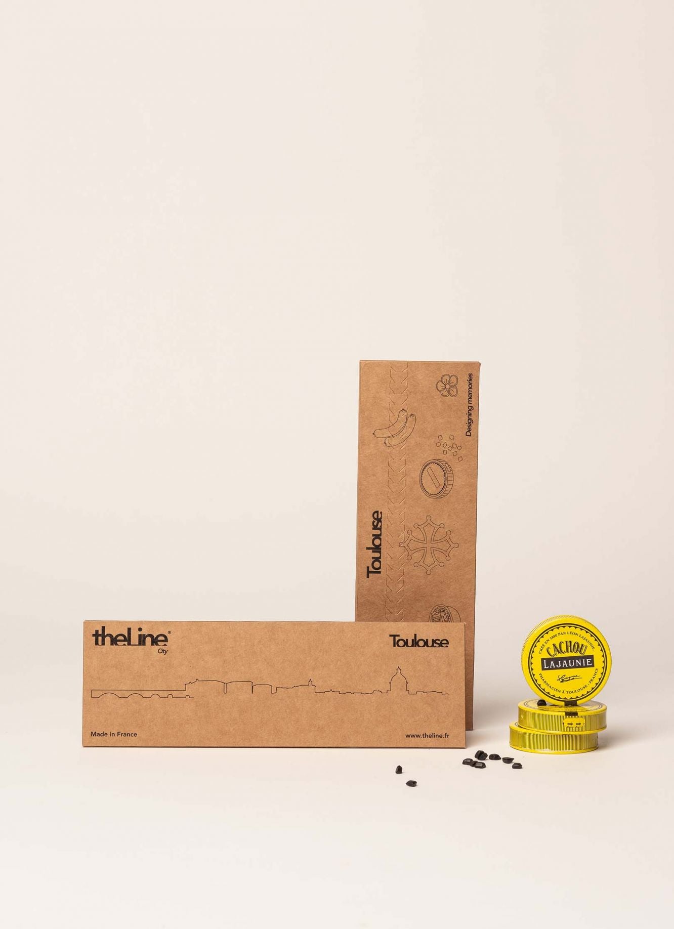 Posez The Line Mini n’importe où et collectionnez vos villes préférées. Le support cartonné permet une tenue parfaite de la ligne. A la façon d’un cadre, nous avons imaginé une cravate qui permet de maintenir le support debout. Vous pouvez ainsi le poser où vous voulez. Nous avons aussi noté quelques chiffres clés sur la ville tout comme les coordonnées GPS à partir desquelles nous avons dessiné la ligne, le nombre d’habitants et la superficie de la ville.