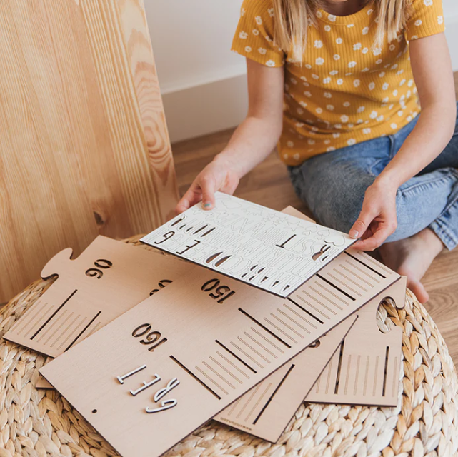 - Avec 18 flèches en bois autocollantes pour indiquer les dates ou l'âge de la mesure.