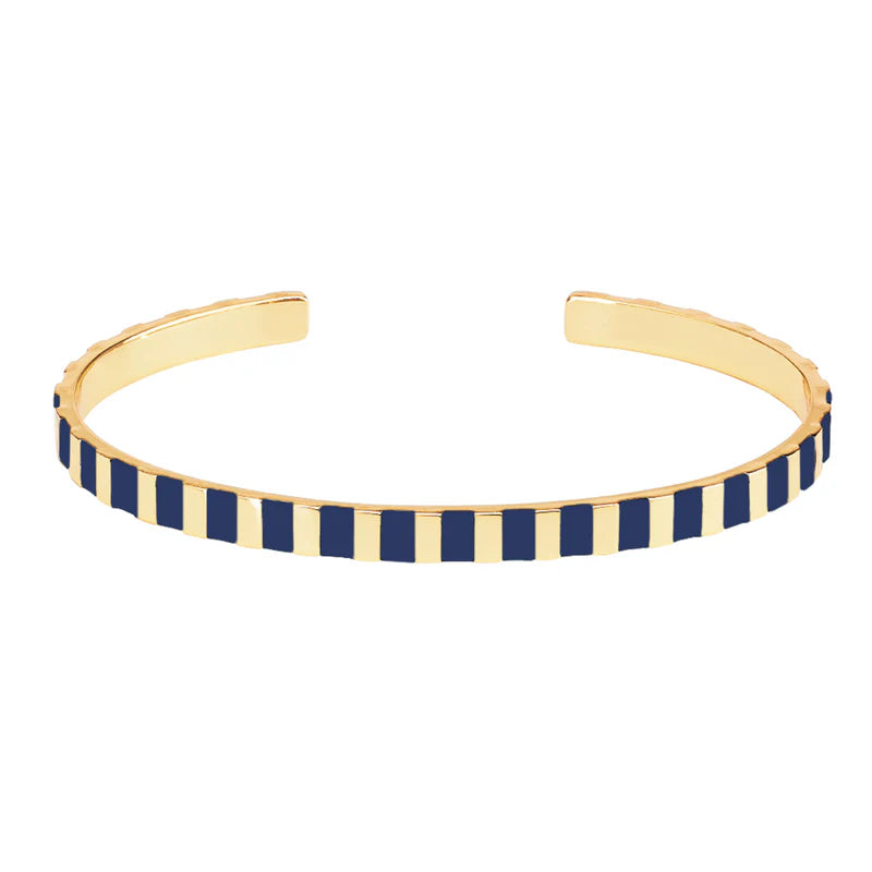 All our bracelets are made from brass dipped in a gold bath. The coloring is done in enamel. Our bracelets are brushed, varnished, polished before being engraved on the inside.