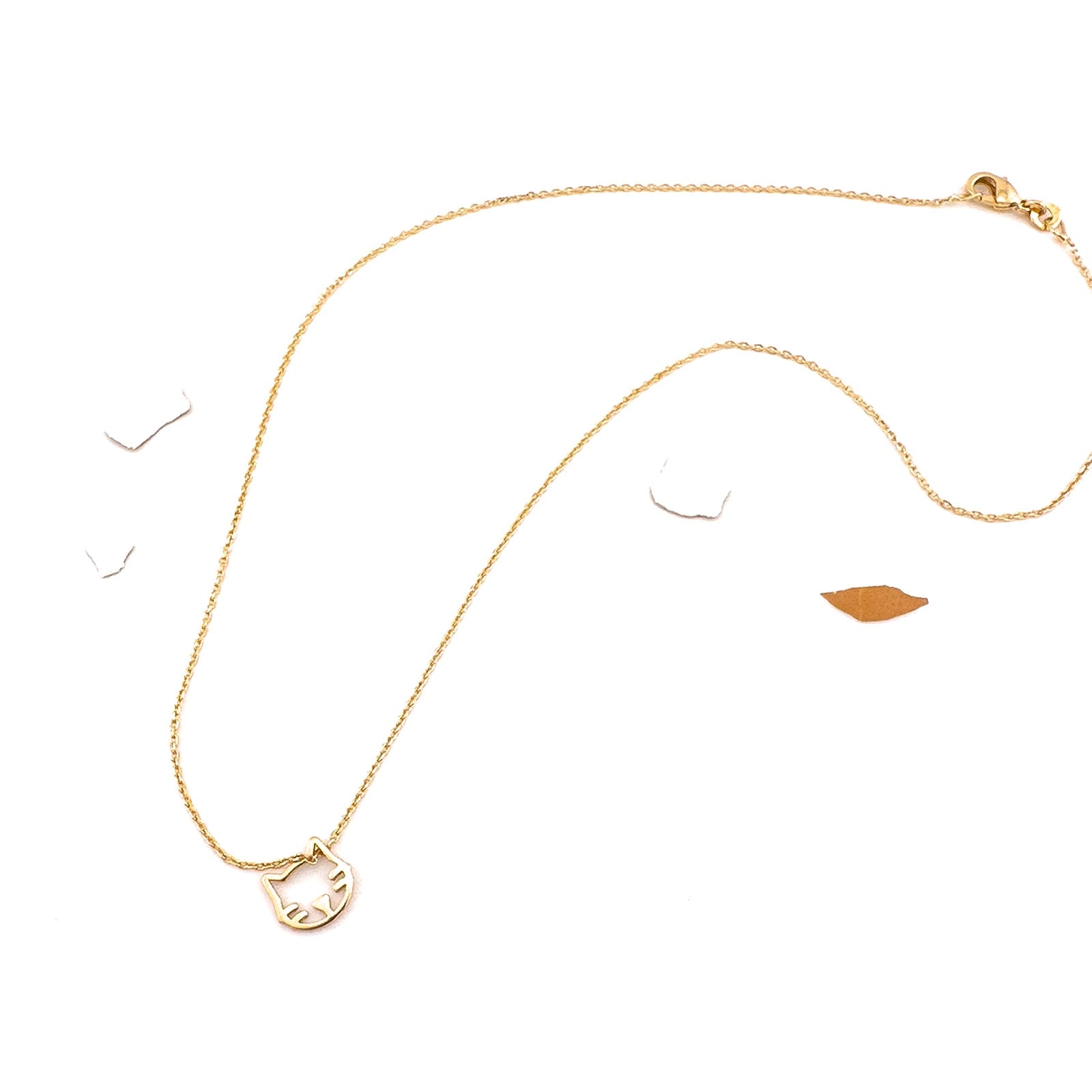 Moustache, notre collier petit chat en laiton doré 3 microns est le cadeau parfait suspendu à une chaîne.
