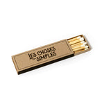 The box is made of kraft cardboard with a raw and rustic texture. It is printed on one side in black with the inscription "Les Choses Simples" in kraft color. On the other side it is in kraft color with the inscription "Les Choses Simples" in black. The match is scratched on one of the edges.