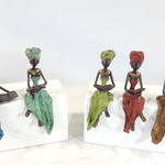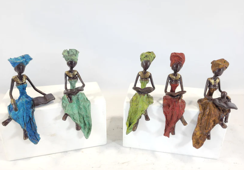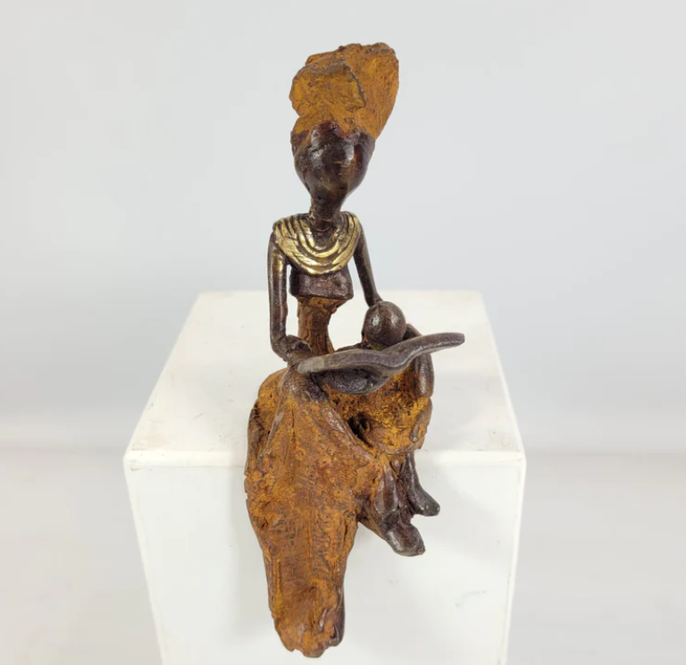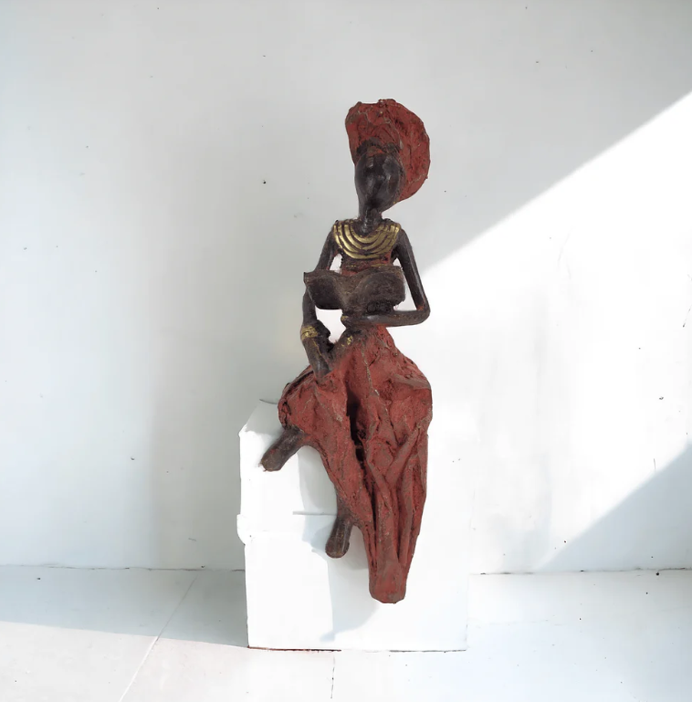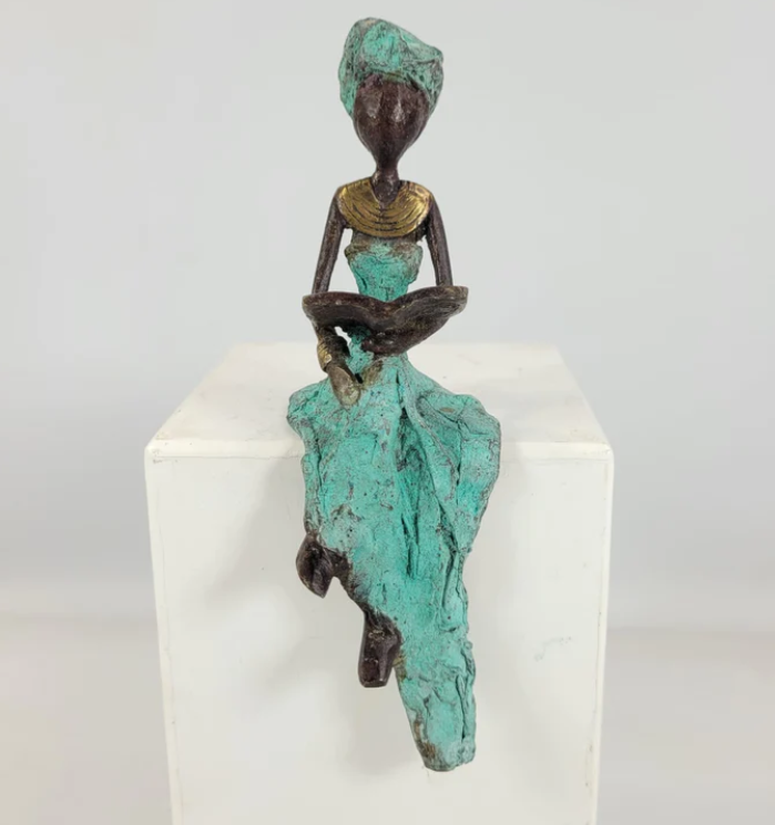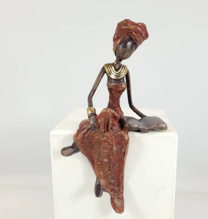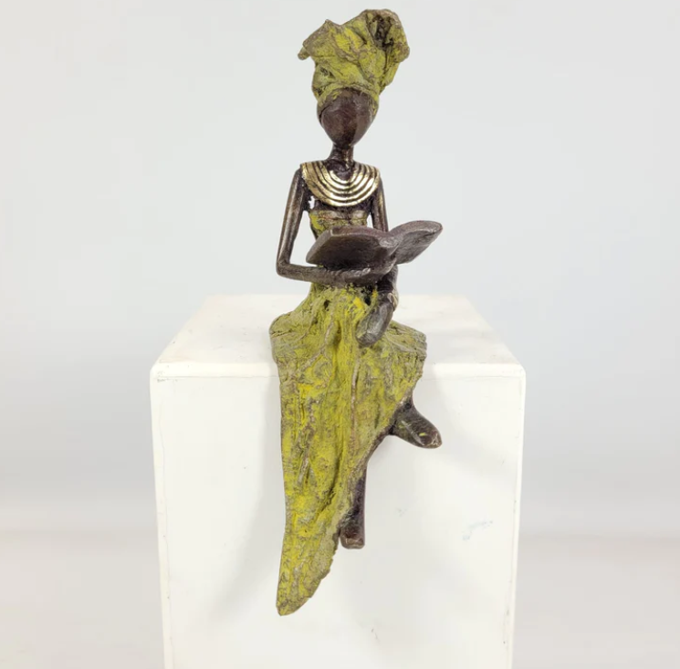 This elegant bronze sculpture was created by Burkinabé artist Hamed Nikiema. The reading woman is a symbol of learned and strong women in Africa.