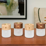 Our smart diffuser lamp is a portable real wood ambient desk lamp with a seamlessly integrated copper plate oil diffuser. Featuring a convenient gold touch sensor, it gently heats to quietly and slowly fill your room with your favorite scent while emitting a beautiful light through the frosted glass.