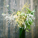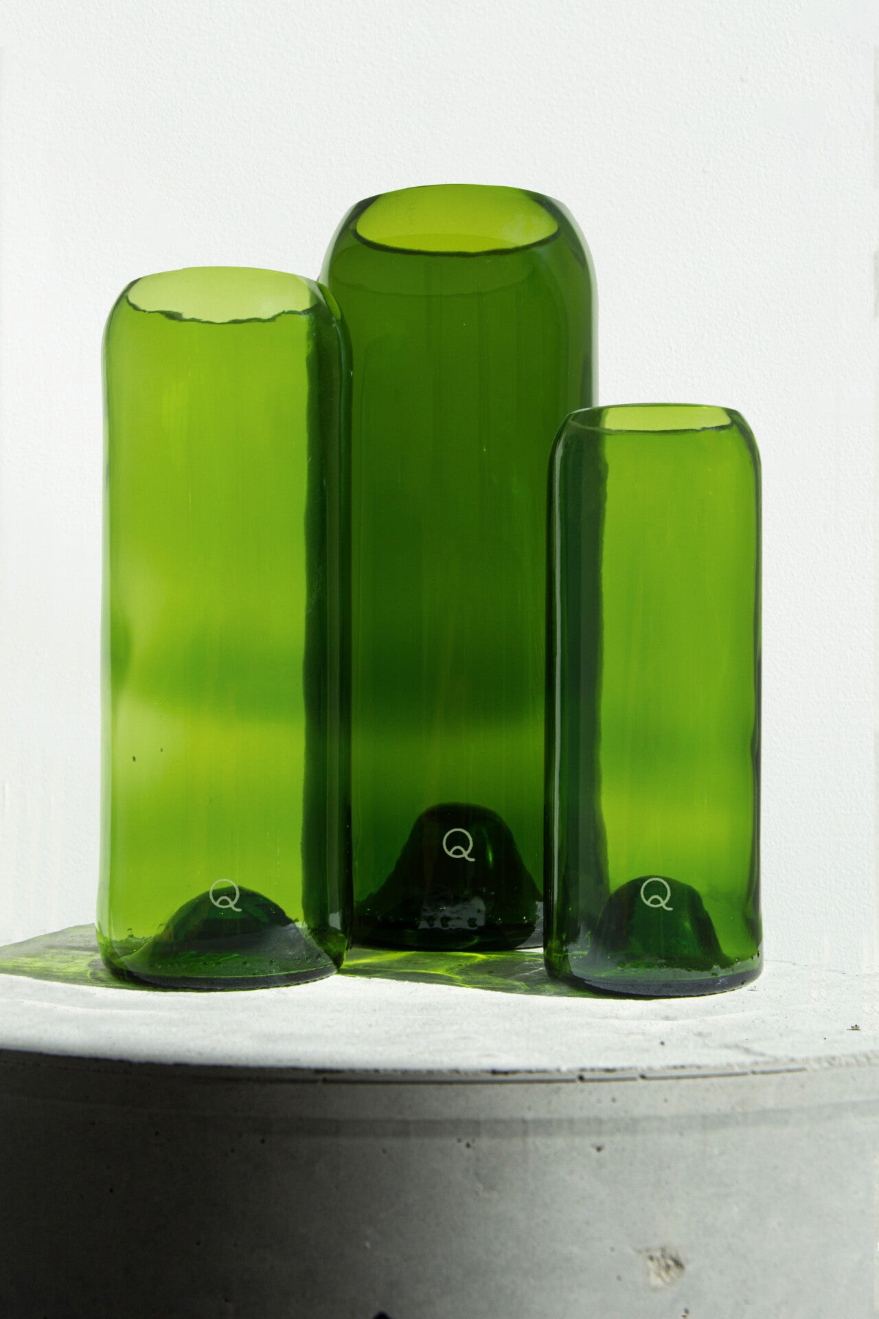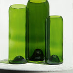 Vase made from a Bordeaux bottle. Its green tint will have no trouble matching your bouquets.