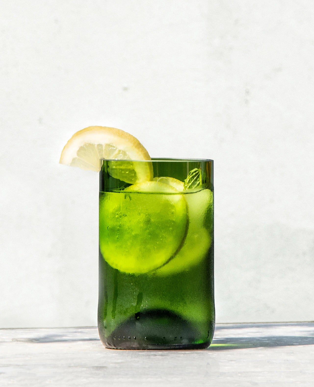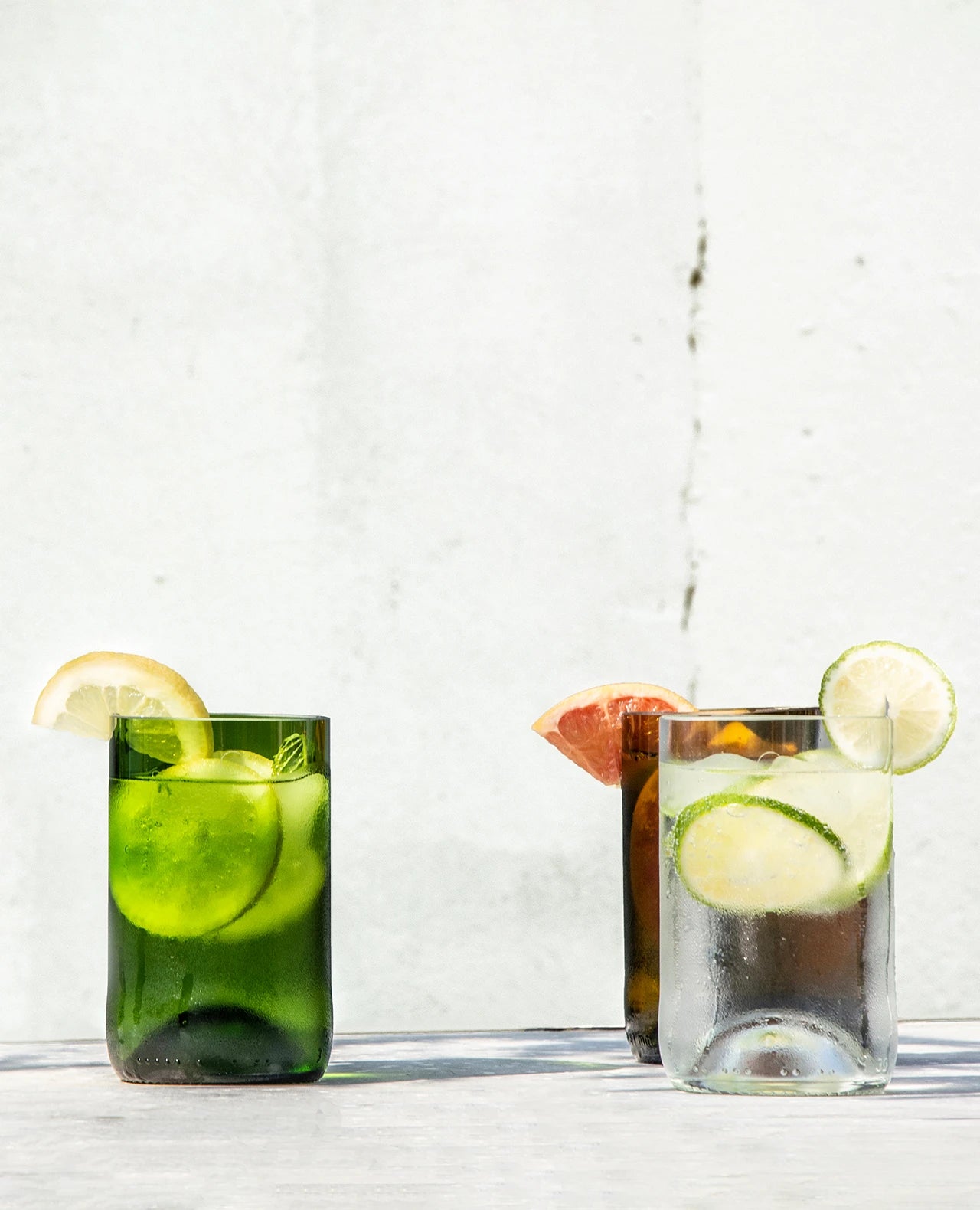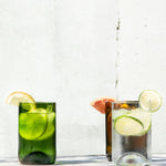 Lots de 2 verres ou 4 verres façonnés à partir de bouteilles bordelaises vertes.