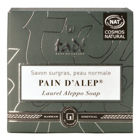 Small Cosmos certified Aleppo soap in Syria, rich in essential trace elements and fatty acids. Superfatted soap for normal skin.