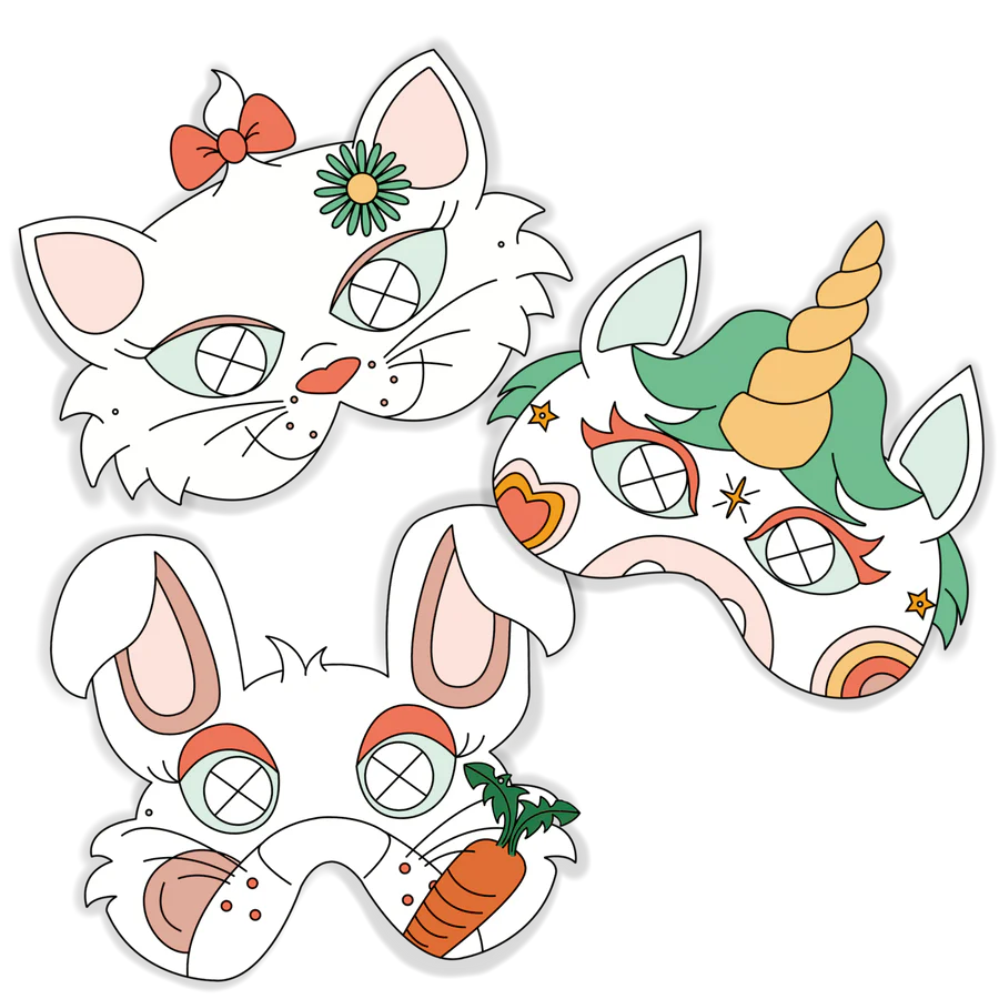 - Pack Mimi : chaque ensemble comprend trois masques d'animaux adorables : la licorne, le chat et le lapin.