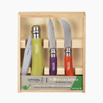Le coffret en bois contient le couteau de jardin, la serpette-greffoir N°08 et la scie fermante N°12.