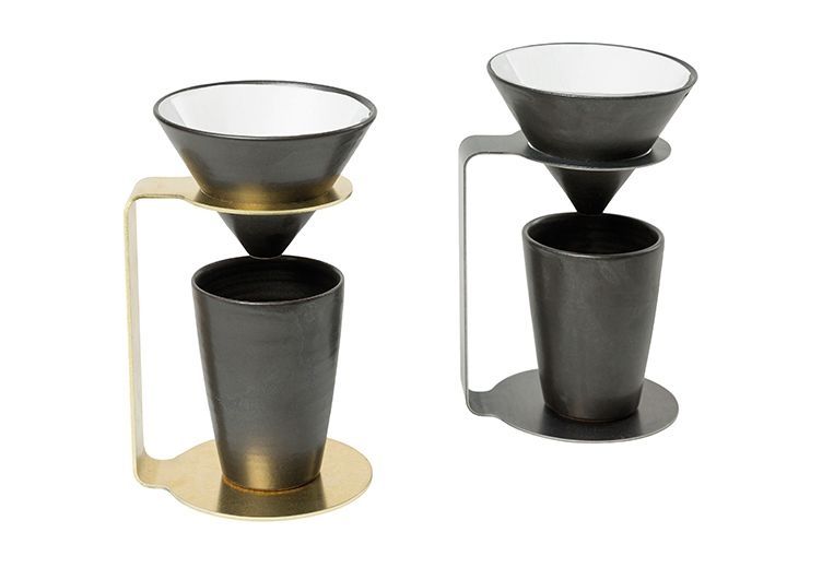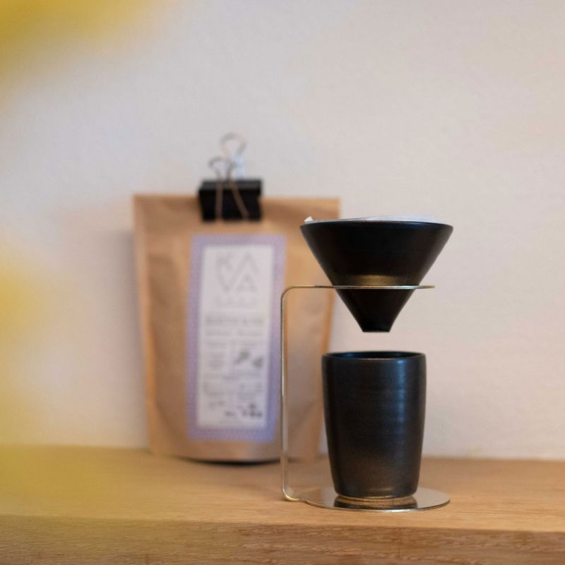 MyCoffee, set dripper + tasse / céramique noire, support en acier noir