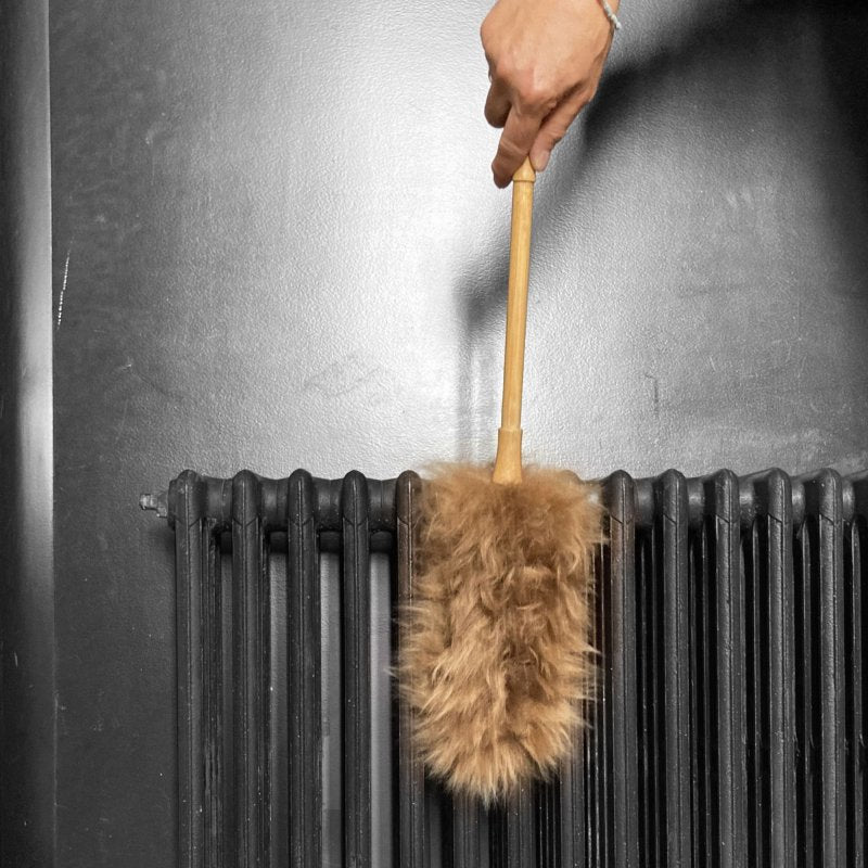 “Housekeeping tool” par excellence, the natural ostrich feather finish captures dust without moving it.
