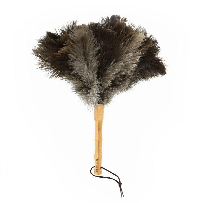 “Housekeeping tool” par excellence, the natural ostrich feather finish captures dust without moving it.