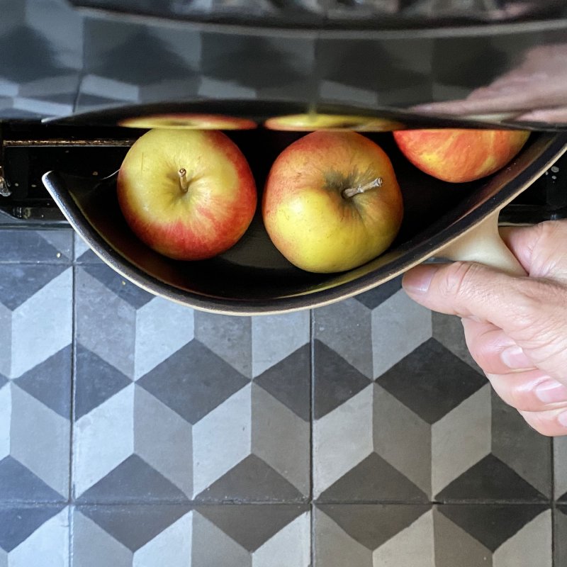Le cuit pomme, authentique et si atypique. Il prend place au coeur des braises de votre cheminée pour donner un parfum d'antan à vos recettes de pommes, poires et autres fruits ou légumes.