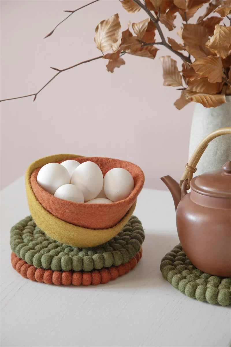 Tous nos produits sont composés à 100% de laine. En fait, la fabrication du feutre est une technique ancienne. Vous ajoutez de l'eau tiède savonneuse à la laine, pressez et frottez la laine et les fibres ensemble pour former un textile feutré. Au fur et à mesure que les fibres se resserrent, nous commençons à façonner un bas de Noël ou tout autre article selon la forme souhaitée. Si la décoration est réalisée dans plusieurs couleurs, par exemple une fleur, alors cette couleur y est ajoutée. L'article est ensuite prêt à être décoré de broderies, de fleurs ou de perles, etc. - tout est fait à la main.