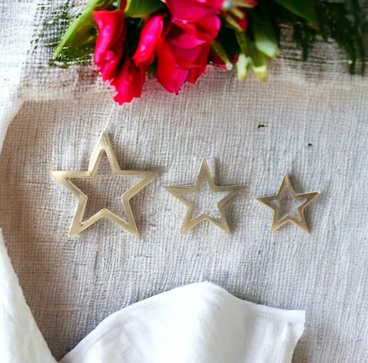 Ces belles et simples étoiles en bronze ont été créées par l'artisan burkinabé Hamidou Ouedraogo.
