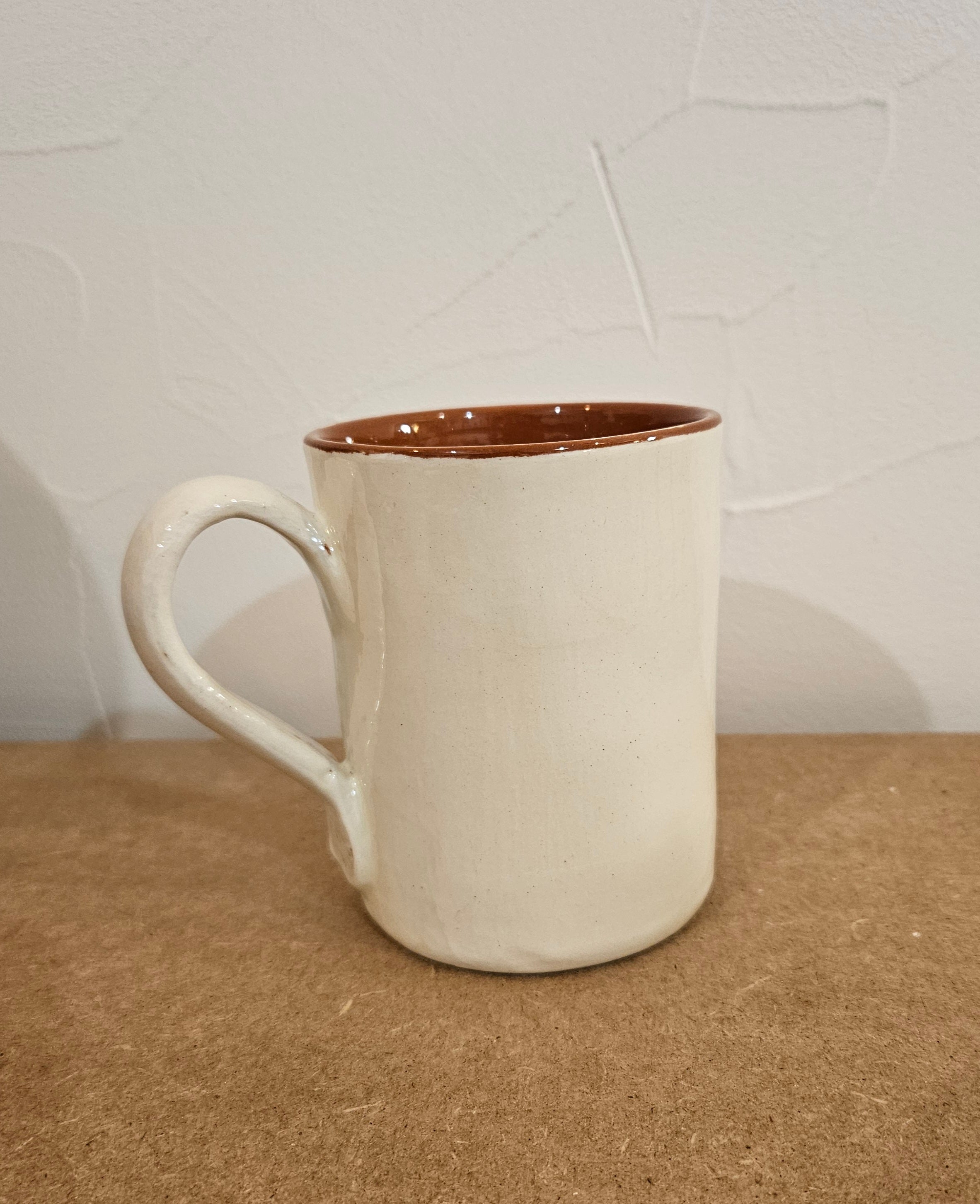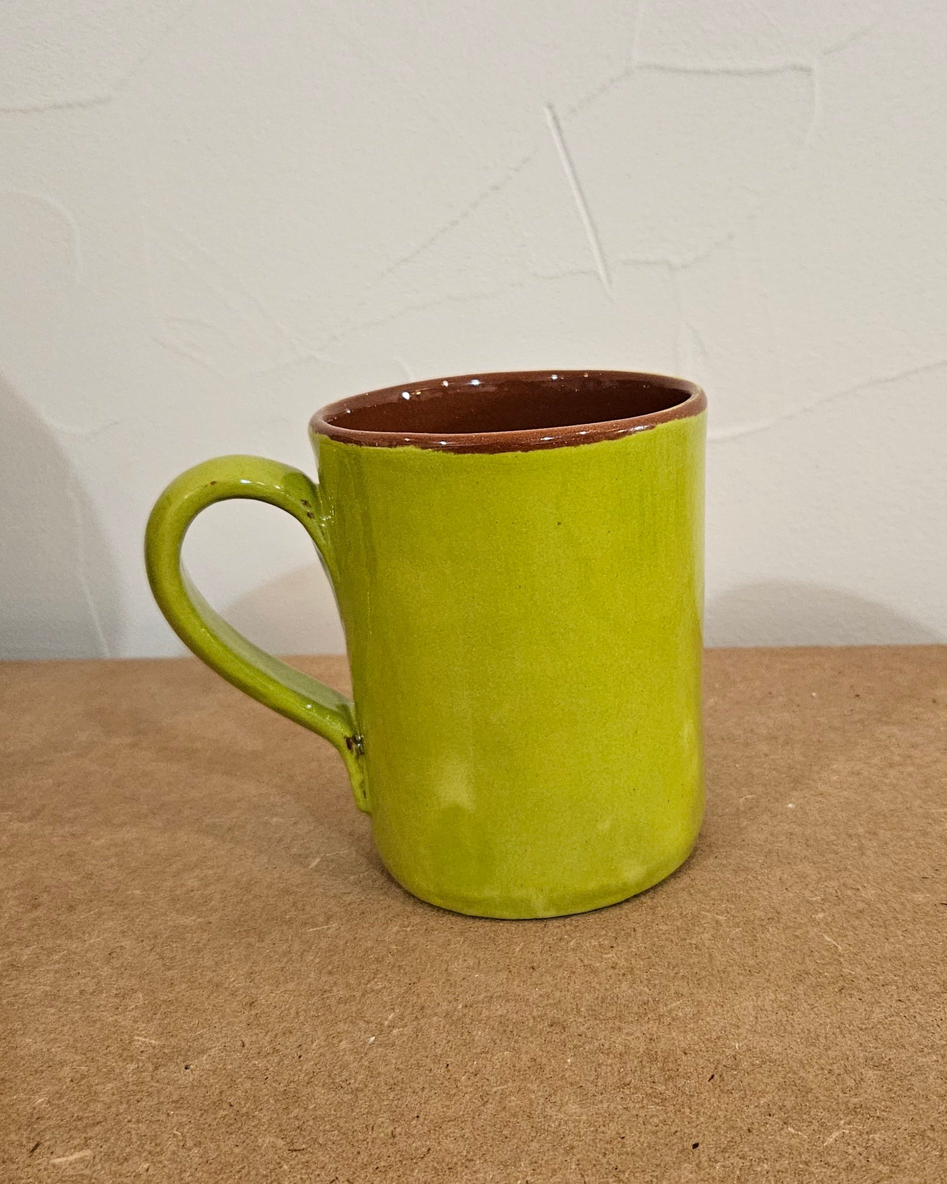 Façonné à partir d'argile rouge, ce mug est réalisé selon un processus artisanal rigoureux. Après avoir été modelé et découpé, il sèche pendant une semaine avant de recevoir une couche d’engobe. La première cuisson, appelée cuisson de dégourdi, dure 16 heures à près de 1000°C. Ensuite, chaque pièce est émaillée et cuite à nouveau pendant 16 heures à 980°C, garantissant une résistance exceptionnelle aux taches et une imperméabilité totale. Ces mugs sont également compatibles avec le lave-vaisselle.