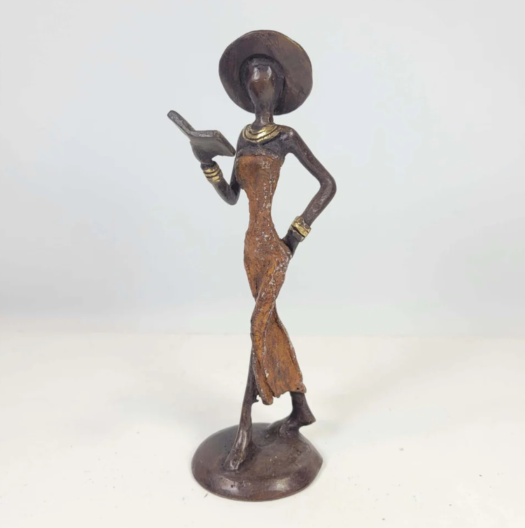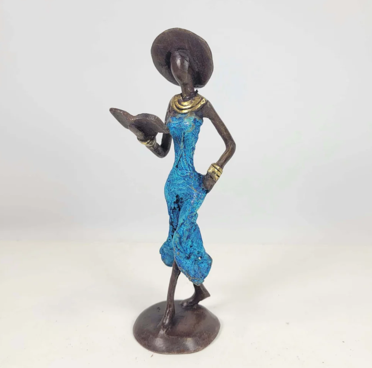 Ces élégantes sculptures en bronze ont été créées par l'artiste burkinabé Soré. Nous présentons ici un seul motif, disponible en plusieurs couleurs.