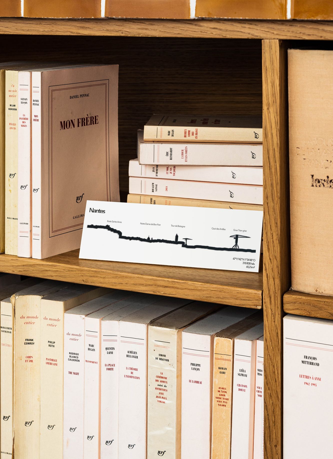 On y voit les historiques grues Jaunes et Grises, l'église Notre-Dame-de-Bon-Port, la tour de Bretagne et la Butte Saint Anne.
