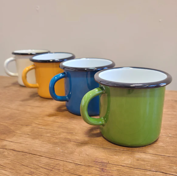 Cette belle tasse en émail est très bien faite et l'émail est très épais, ce qui rend la tasse très confortable à utiliser au quotidien. Leur poids dans la main témoigne de leur qualité de fabrication !